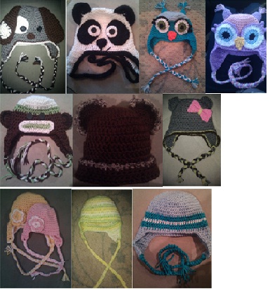 I have made all different types from simple one-two color with flowers and bows to animals. I can make just about anything that you'd want. If you have a picture of something you like, I can likely match it. I use the softest baby yarn that my daughter will sometimes even carry around like a stuffed animal - it's that soft!